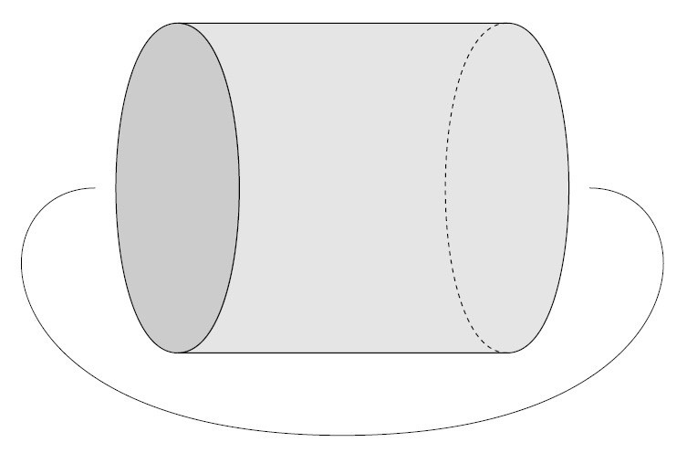 이러한 맥락에서, 자연스레 우리는 곡면을 통해 특정 3차원 공간을 이해보려고 시도할 수 있다. 예를 들어, 원 $S^1$을 살짝 부풀려서 원기둥 $S^1 \times [0, 1]$을 만들고, 원 사이의 homeomorphism $f : S^1 \to S^1$을 이용하여 원기둥의 양 끝을 비틀어 붙일 수 있다. 즉, $S^1 \times [0, 1] / (x, 0) \sim (f(x), 1)$을 생각하여 아래와 같이 topological torus를 얻을 수 있다.