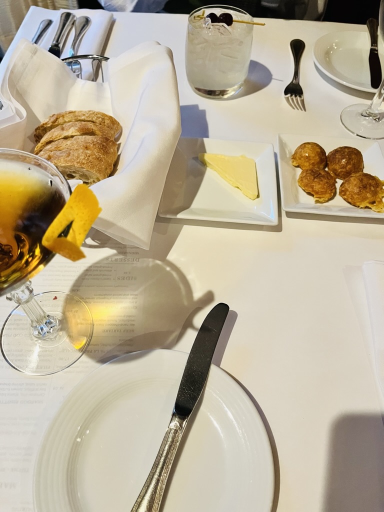 우리는 애피타이저로 Beef Tartare와 Seasonal Soup of the Day를 먹었다. Truffle이 들어간 Cauliflower soup이었다. 둘다 정말 맛있었다. 메인으로는 Duck à l'Orange와 Cog Au Vin을 먹었다. 나는 오리 스테이크를 좋아한다. Cog Au Vin은 닭이 얹어진 파스타 요리였는데, 이것도 정말 맛있었다. 디저트로는 Mignardises를 먹고 French press도 마셨다. 뭔가 불란서 식당에 왔으니 French press가 먹고 싶었다.